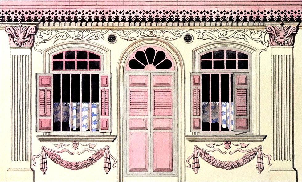 In Renascent…Singapore’s eclectic and colourful, architectural tradition. A collection of Singapore’s Peranakan window facades in hand-signed and numbered limited editions by Artist Evelyn.